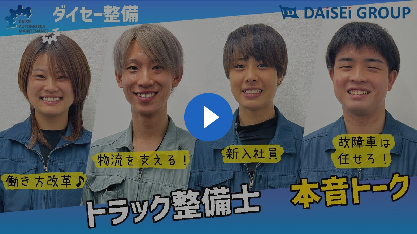 皆さんはじめまして、ダイセー整備株式会社です。 この度はダイセー整備株式会社 採用サイトをご覧いただきありがとうございます。 私たちはダイセーグループの一員として車やトラックの整備を行っている会社です。 ダイセーグループには2600台以上のトラックがありますが、整備事業を通して日本の流通と物流を支え、人々の安全で快適な生活を創造していくのが私たちのミッションです。私たちと一緒に整備士としてのキャリアステップを目指しませんか? 2025.11.06♢ 勤続表彰 ♢ 2025.10.21☆ インフルエンザ予防接種補助 ☆